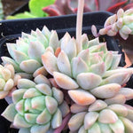 Mature plants reach 3-4 inches tall and 6-8 inches wide, with flowering stalks rising in summer to display bell-shaped yellow or orange blooms. Ideal for ground cover, rock gardens, or hanging planters, this succulent thrives in well-draining soil and sunny conditions. Compared to other Echeverias like Echeveria elegans or Echeveria secunda, the Prolifica stands out for its vigorous growth and cascading habit.