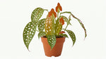 * Calathea Medallion: Known for its intricate patterned leaves, this plant complements the begonia's bold foliage.